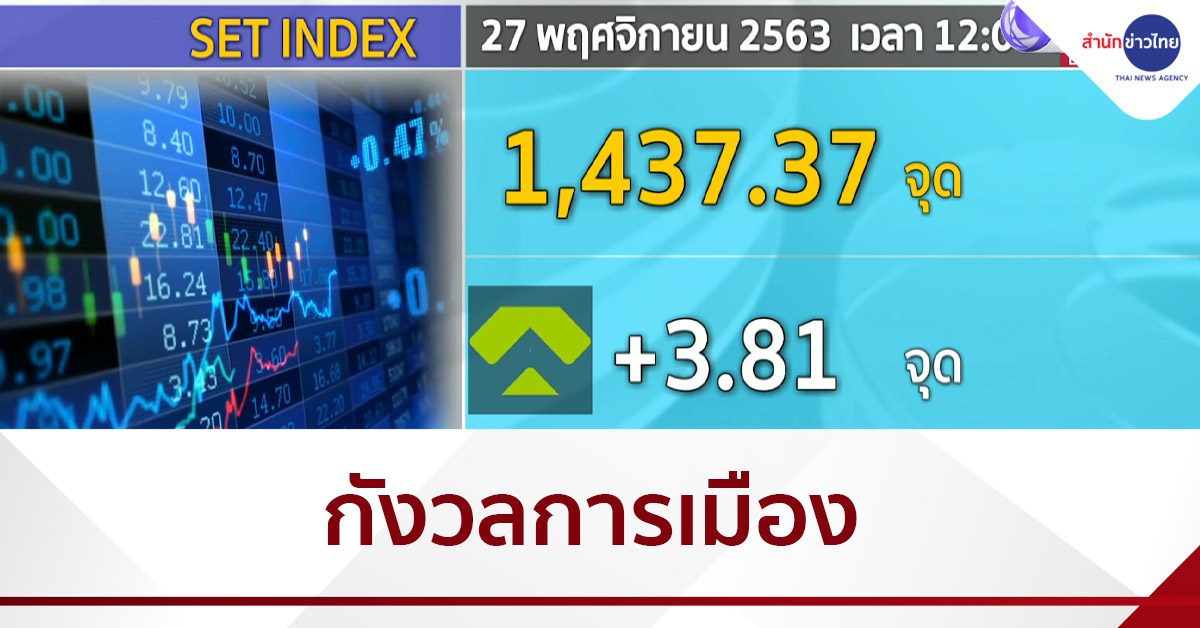 27 พ.ย.-ตลาดหุ้นไทยเช้าเปิดตลาดติดลบเล็กน้อย แม้ว่าดัชนีจะได้แรงหนุนจากความคาดหวังกระแสเงินต่างชาติที่ไหลเข้ามา แต่ยังมีความกังวลทางการเมืองภายในที่จะมีการชุมนุมในวันนี้