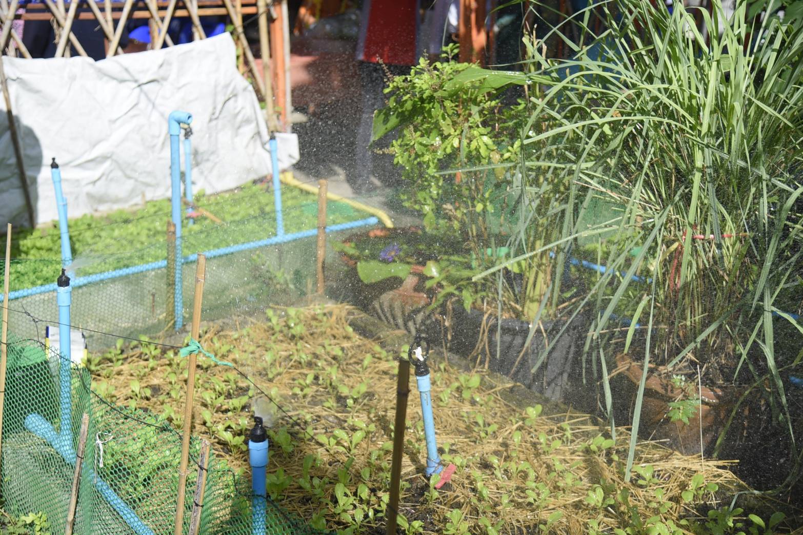 ทั้งนี้ชุมชนพัฒนาบ่อนไก่ ตั้งอยู่บนพื้นที่ของสำนักงานทรัพย์สินส่วนพระมหากษัตริย์ ภายในชุมชนมีการรวมกลุ่มจดทะเบียนวิสาหกิจชุมชน ผลิตสินค้าเพื่อจำหน่าย เป็นรายได้เสริมของสมาชิก อาทิ ผลิตภัณฑ์ทำความสะอาดและดูแลเส้นผม (แชมพู/ครีมนวดผมมะกรูดใบย่านาง ครีมนวดผมมะพร้าว เซรั่มบำรุงผมน้ำมันมะกอก) ซึ่งเป็นหนึ่งในผลิตภัณฑ์ชุมชน และผักปลอดสารพิษ (ต้นอ่อนทานตะวัน วอเตอร์เครส) ซึ่งเป็นอีกผลิตผลจากการที่ชุมชนนำพื้นที่ว่างเปล่าประมาณ 30 ตร.ม. มาดำเนินการปลูกผักสวนครัวปลอดสารพิษนานาชนิด เพื่อจำหน่ายและแจกจ่ายให้คนในชุมชนด้วย ตามปกติแล้วสวนผักดังกล่าวจะมีสมาชิกผู้รับผิดชอบผลัดกันมาดูแล เพาะพันธุ์ และรดน้ำเป็นประจำทุกวัน ในช่วงเช้า เย็น หรือตามสะดวก ปัญหาที่พบบ่อยคือ สมาชิกเป็นผู้สูงอายุต้องรดน้ำทุกวันขณะรดน้ำต้นไม้ในพื้นที่ทางเดินที่แคบ/จำกัด อาจไม่ค่อยสะดวก รวมทั้งปริมาณน้ำและระยะเวลาที่ใช้รด อาจมีปริมาณน้ำส่วนเกินที่สูญเสียไป หรือปริมาณน้ำที่น้อยไปจนกระทบต่อการเจริญเติบโตของพืชผักเกิดขึ้นได้