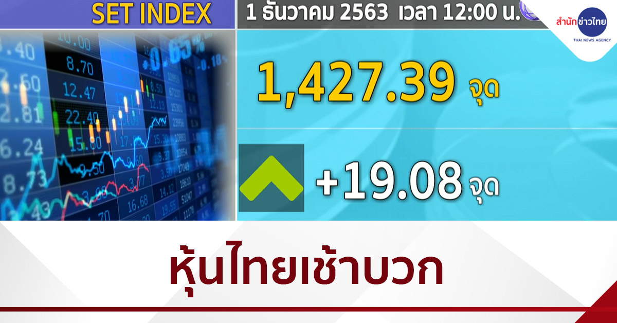 1 ธ.ค.-ดัชนีหุ้นไทยช่วงเช้าบวกได้กว่า 10 จุด ตามตลาดหุ้นเอเชียดีดตัวขึ้นในช่วงเช้า อย่างไรก็ตามนักลงทุนจับตาผลสรุปประชุมกลุ่มโอเปกพลัสและศาลรัฐธรรมนูญ ตัดสินคดีนายกรัฐมนตรีวันพรุ่งนี้ ( 2 ธ.ค.)