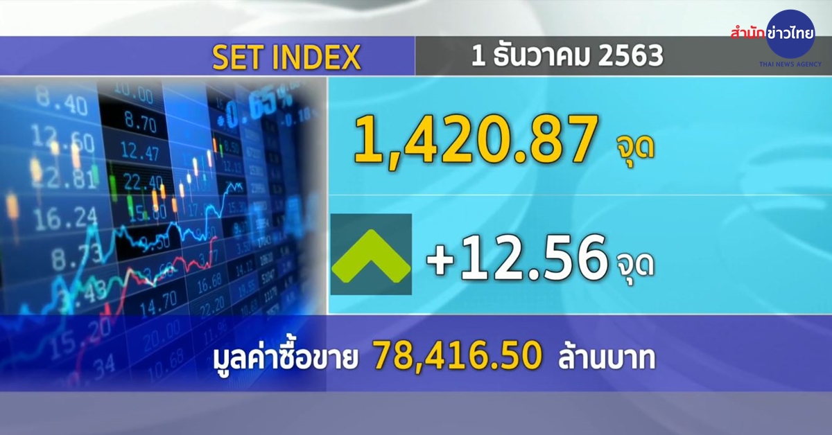 กรุงเทพฯ 1 ธ.ค. – ดัชนีตลาดหุ้นไทยวันนี้ (1 ธ.ค.) ปิดที่ 1,420.87 จุด เพิ่มขึ้น 12.56 จุด ด้วยมูลค่าการซื้อขาย 78,416.50 ล้านบาท. – สำนักข่าวไทย