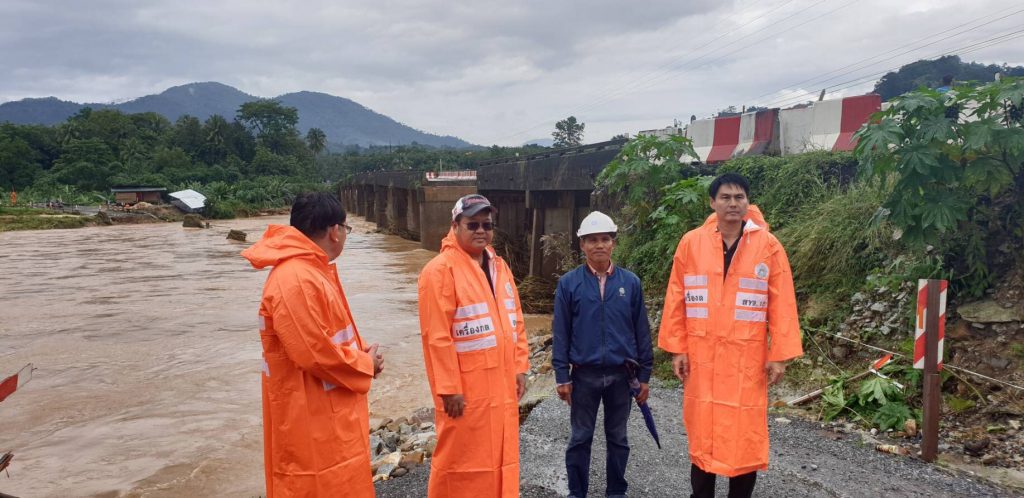 และ 3.ทางหลวงหมายเลข 4186 ตอน โรงเหล็ก-ห้วยพาน ที่ กม.1+128 (สะพานขาด) ขณะนี้กระแสน้ำลดระดับความรุนแรงลง อยู่ระหว่างการติดตั้งสะพานเบลี่ย์ คาดแล้วเสร็จภายในวันที่ 7 ธ.ค. 63