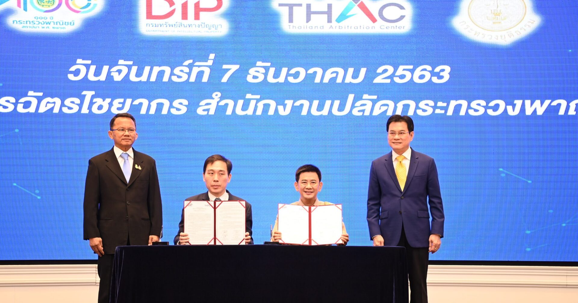 นายจุรินทร์ ลักษณวิศิษฏ์ รองนายกรัฐมนตรีและรัฐมนตรีว่าการกระทรวงพาณิชย์ และนายสมศักดิ์ เทพสุทิน รัฐมนตรีว่าการกระทรวงยุติธรรมเป็นสักขีพยาน เพื่อสร้างความร่วมมือระหว่างกันในการพัฒนาระบบระงับข้อพิพาทด้านทรัพย์สินทางปัญญาออนไลน์ (ODR) และพัฒนาบุคลากรด้านการระงับข้อพิพาทร่วมกันจะช่วยอำนวยความสะดวกผู้ประกอบการในการไกล่เกลี่ยข้อพิพาท และลดจำนวนคดีขึ้นสู่ศาลปัจจุบันทรัพย์สินทางปัญญาเข้ามามีบทบาทสำคัญต่อการประกอบธุรกิจ โดยมีการนำทรัพย์สินทางปัญญามาใช้ประโยชน์ เพื่อสร้างมูลค่าเพิ่มให้กับสินค้าและบริการ ส่งผลให้เกิดกรณีพิพาทเรื่องทรัพย์สินทางปัญญามากขึ้น
