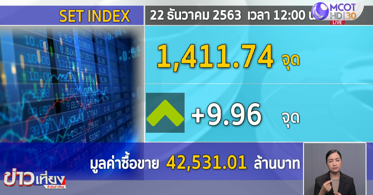 22 ธ.ค.-ตลาดหุ้นไทยช่วงเช้า บางช่วงดัชนีลงไปบ้าง แต่ก็ฟื้นตัวขึ้นมาได้ แม้ยังเจอแรงกดดันสถานการณ์แพร่ระบาดโควิดในไทยและข่าวการกลายพันธุ์ในอังกฤษ