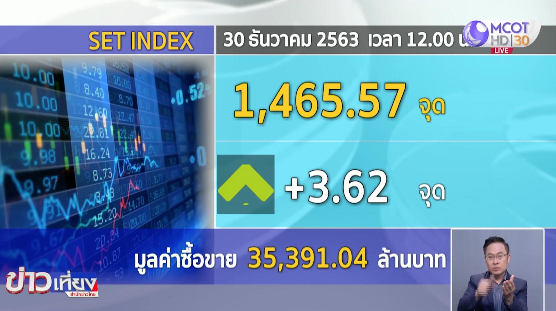 หุ้นไทยช่วงเที่ยงบวกเล็กน้อย