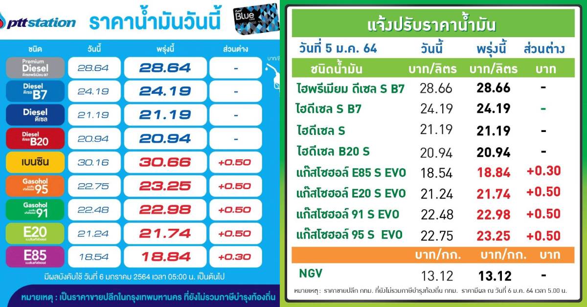 โดยราคาขายปลีกจะเป็นดังนี้ เบนซิน ราคา 30.66 บาทต่อลิตร, แก๊สโซฮอล์95 ราคา 23.25 บาทต่อลิตร, E20 ราคา 21.74 บาทต่อลิตร, แก๊สโซฮอล์91 ราคา 22.98 บาทต่อลิตร, E85 ราคา 18.84 บาทต่อลิตร, ดีเซลB7 ราคา 24.19 บาทต่อลิตร, ดีเซล-B10 ราคา 21.19 บาทต่อลิตร, ดีเซล-B20 ราคา 20.94, ดีเซลพรีเมี่ยม B7 ราคา 28.64 บาทต่อลิตร โดยราคาขายปลีกข้างต้นยังไม่รวมภาษีบำรุงกรุงเทพมหานคร.-สำนักข่าวไทย