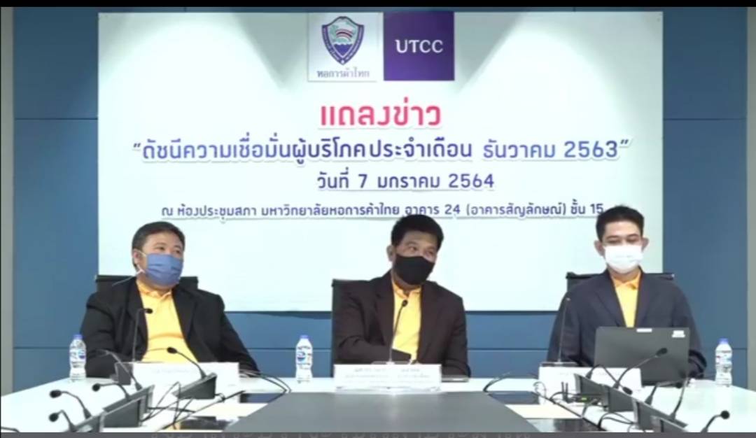 นายธนวรรธน์ พลวิชัย อธิการบดี มหาวิทยาลัยหอการค้าไทย และประธานที่ปรึกษาศูนย์พยากรณ์เศรษฐกิจและธุรกิจ เปิดเผยว่า ดัชนีความเชื่อมั่นหอการค้าไทย (TCC Confidence Index) หรือ TCC-CI สำรวจความคิดเห็นจากภาคธุรกิจและหอการค้าทุกจังหวัดทั่วประเทศ รวม 2249 ตัวอย่าง ในเดือน ธันวามคม 63 พบว่า ดัชนีความเชื่อมั่น ของผู้บริโภคปรับตัวลดลงครั้งแรกในรอบ 3 เดือน อยู่ที่ 43.5 จาก 45.6 ดัชนีความเชื่อมั่นเกี่ยวกับโอกาสหางานทำ อยู่ที่ 47.5 จาก 50.0 และดัชนีความเชื่อมั่นเกี่ยวกับรายได้ในอนาคต อยู่ที่ 59.2 จาก 61.6 เนื่องจากการแพร่ระบาดของโควิดรอบใหม่ที่สมุทรสาคร โดยเฉพาะตลาดกุ้ง ขณะนี้มีการแพร่ระบาดหลายจังหวัด และมียอดผู้ติดเชื้อกว่า 500 คนต่อวัน ทำให้ประชาชนเกิดความตระหนก และมีความกังวลสูง