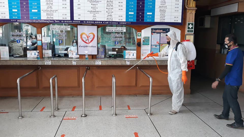 - ประชาสัมพันธ์เกี่ยวกับการป้องกันตนเองผ่านช่องทางต่างๆ โดยเน้นย้ำให้มีการทำความสะอาดสถานีรถไฟ ขบวนรถโดยสาร สถานที่จำหน่ายตั๋วโดยสาร ที่พักผู้โดยสาร สถานที่ให้บริการ ด้วยน้ำยาฆ่าเชื้อ หรือแอลกอฮอล์สม่ำเสมออย่างน้อยทุกๆ 2 ชั่วโมง และฉีดพ่นน้ำยาฆ่าเชื้อขบวนรถโดยสารทั้งสถานีต้นทางและปลายทางทุกครั้ง