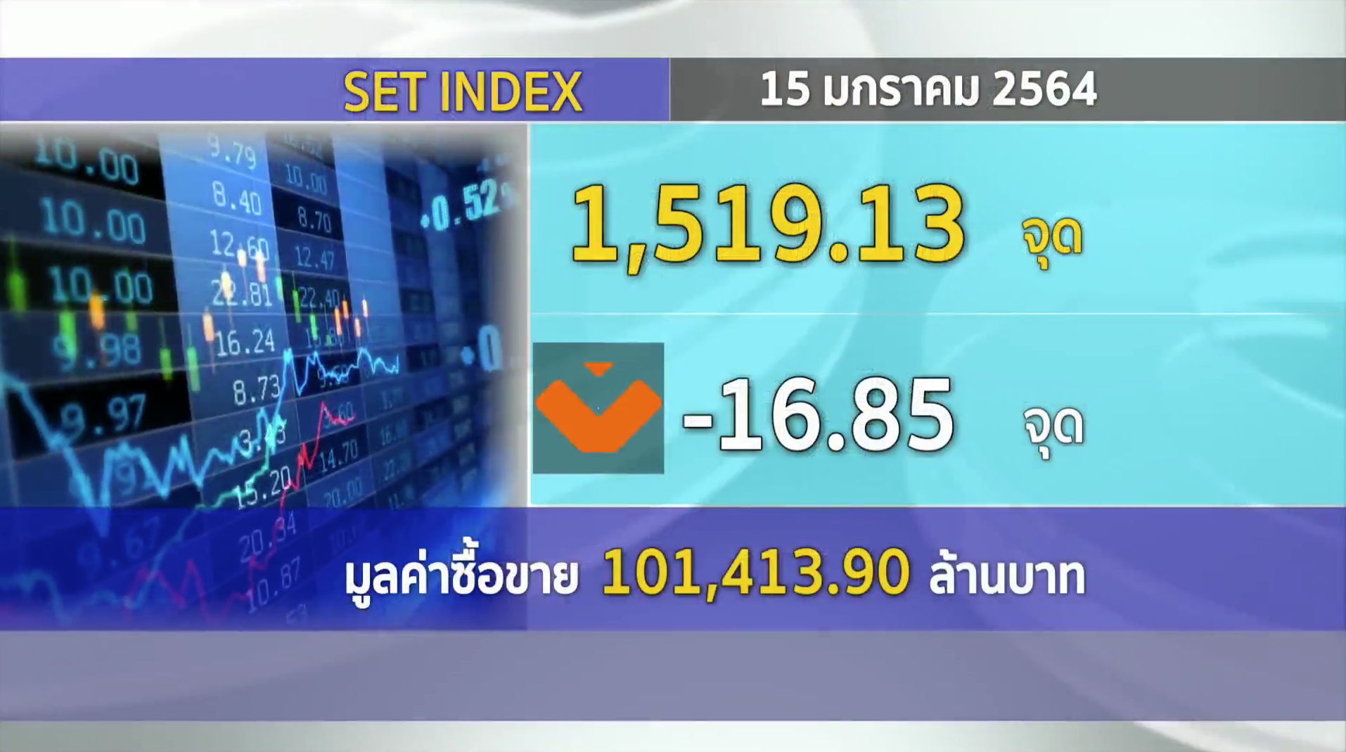 15 ม.ค.-ตลาดหลักทรัพย์ปิดวันนี้ที่ระดับ 1,519.13 จุด ลดลง 16.85 จุด (-1.10%) มูลค่าการซื้อขาย 101,413.90 ล้านบาท