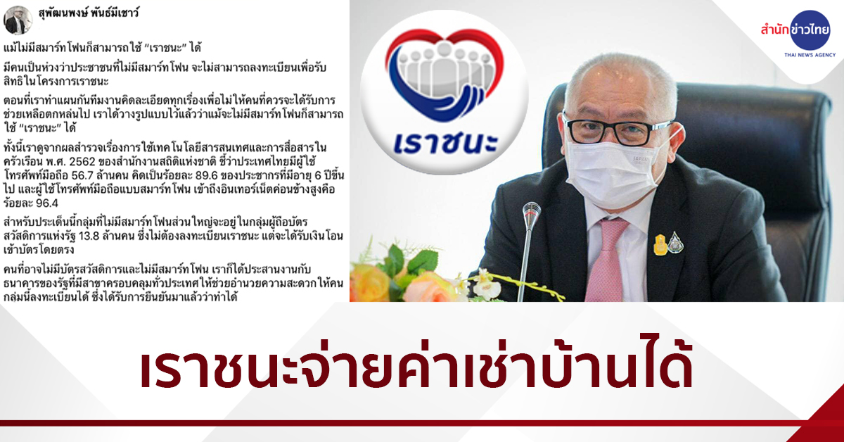 โดยมีรายละเอียดเนื้อหาดังนี้… แม้ไม่มีสมาร์ทโฟนก็สามารถใช้ “เราชนะ” ได้ มีคนเป็นห่วงว่าประชาชนที่ไม่มีสมาร์ทโฟน จะไม่สามารถลงทะเบียนเพื่อรับสิทธิในโครงการเราชนะ
