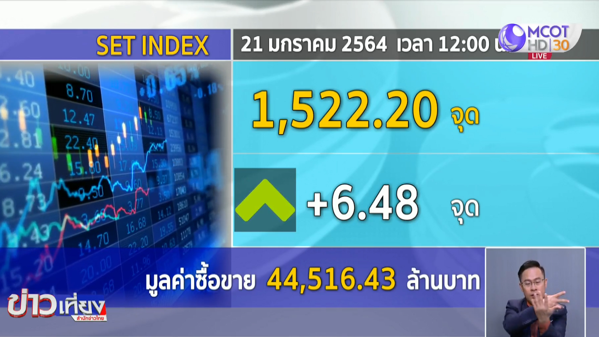 หุ้นไทยช่วงเที่ยงปรับขึ้นเล็กน้อย