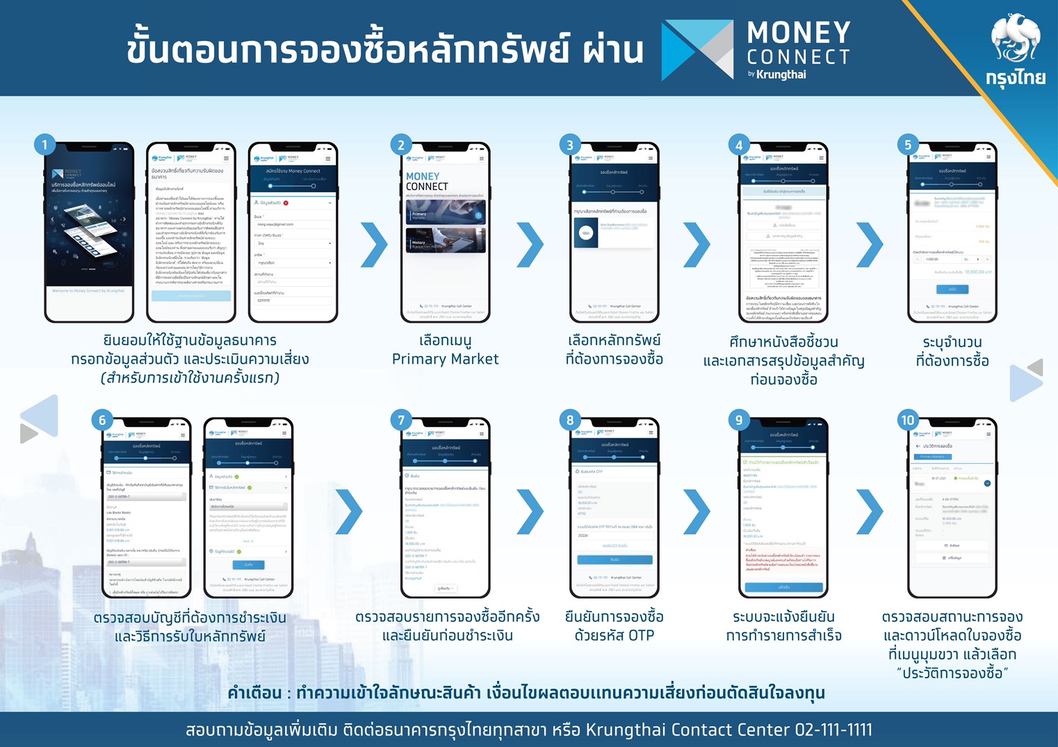 27 ม.ค.-กรุงไทยเปิด 2 ช่องทางจองซื้อหุ้น OR “สะดวก รวดเร็ว ไม่ยุ่งยาก” ลูกค้าใหม่ทำรายการที่สาขา มีพนักงานอำนวยความสะดวก ให้ข้อมูลเรื่องแบบประเมินความเสี่ยงลงทุน ส่วนลูกค้าเดิมทำรายการผ่าน Money Connect ได้ตลอด24 ชั่วโมง จนถึง12.00 น. วันที่ 2 ก.พ.นี้