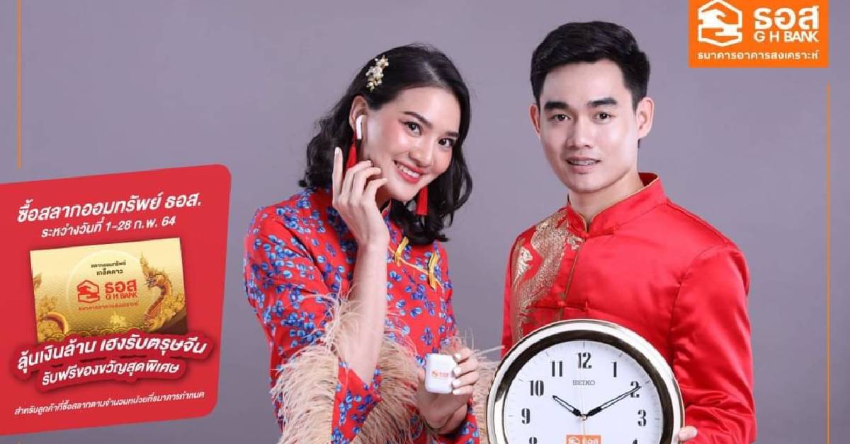 ธนาคารอาคารสงเคราะห์ (ธอส.) ร่วมเฉลิมฉลองเทศกาลตรุษจีน ประจำปี 2564 จัดทำโปรโมชันพิเศษสุดสำหรับลูกค้าที่รักการออมที่ซื้อสลากออมทรัพย์ ธอส. ชุดเกล็ดดาว หน่วยละ 5,000 บาท ผ่าน Application : GHB ALL หรือสาขาของธนาคาร ระหว่างวันที่ 1-28 กุมภาพันธ์ 2564 จำนวน 100 หน่วย ต่อรายการ ขึ้นไป รับฟรีหูฟังไร้สาย i12 TWS Bluetooth 5.0 Stereo จำนวน 1 ชิ้น ตลอดระยะเวลาโปรโมชัน และกรณีซื้อจำนวน 1,000 หน่วย ต่อรายการขึ้นไป รับฟรีนาฬิกาแขวนผนัง SEIKO รุ่น QXA313G สีทอง จำนวน 1 เรือน ตลอดระยะเวลาโปรโมชัน