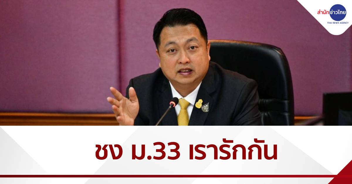นายสุชาติ ชมกลิ่น รมว.แรงงาน ชี้แจงทำความเข้าใจ 39 องค์กรแรงงาน “โครงการ ม.33 เรารักกัน” เผยข่าวดีเตรียมเสนอ ครม. วันที่ 15 ก.พ. จ่ายเงินเยียวยาผู้ประกันตนจำนวน 9 ล้าน 3 แสนคน คนละ 4,000 บาท แบ่งจ่ายสัปดาห์ละ 1,000 บาท โดยจะเปิดลงทะเบียนออนไลน์วันที่ 16-28 ก.พ. ผ่าน www.ม.33 เรารักกัน.com วันที่ 1-7 มี.ค.ตรวจสอบข้อมูลกับฐานข้อมูล คัดกรองผู้ได้รับสิทธิ์ 8-14 มี.ค. ผู้ลงทะเบียนที่ผ่านคัดกรองกดยืนยันรับสิทธิ์ผ่านแอปพลิเคชันเป๋าตัง เริ่มจ่ายเงินผู้ประกันตนทุกวันจันทร์ ที่ 15 ,22 , 29, มี.ค. และ 5 เม.ย. แต่มีเงื่อนไขผู้ที่มีเงินฝากเกิน 5 แสนบาท จะไม่ได้รับสิทธิ และสิ้นสุดวันที่ 31 พ.ค.
