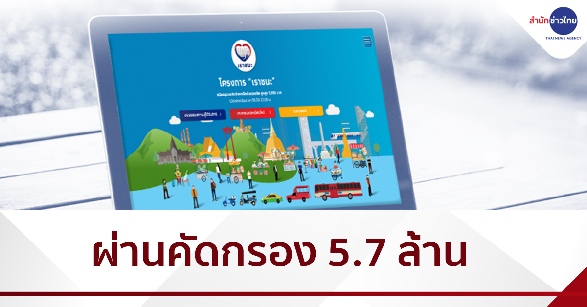 นางสาวกุลยา ตันติเตมิท โฆษกกระทรวงการคลัง เปิดเผยความคืบหน้าการประกาศผลการคัดกรองคุณสมบัติของประชาชนทั่วไปทางเว็บไซต์ www.เราชนะ.com ที่เปิดรับลงทะเบียนระหว่างวันที่ 29 มกราคม – 12 กุมภาพันธ์ 2564 จากข้อมูลล่าสุด มีประชาชนลงทะเบียนแล้วประมาณ 10 ล้านคน โดยมีประชาชนที่ผ่านการคัดกรองคุณสมบัติแล้วมากกว่า 5.77 ล้านคน