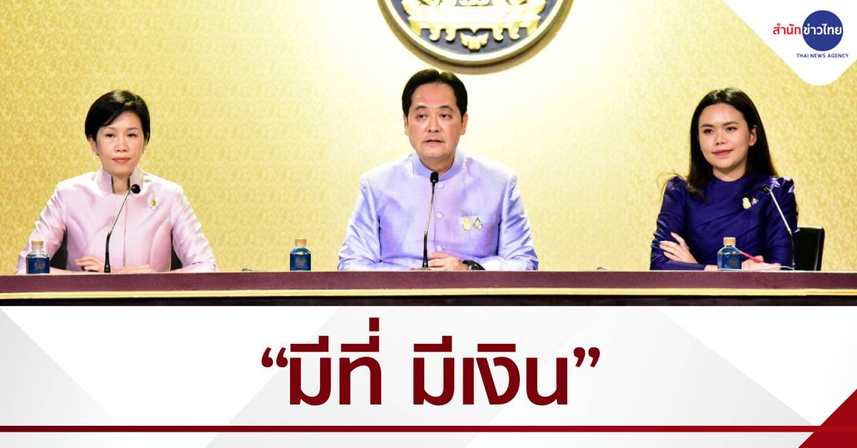 ทำเนียบฯ 15 ก.พ.-ครม. เปิดตัว “มีที่ มีเงิน” สามารถใช้โฉนดที่ดิน-สิ่งปลูกสร้าง ยื่นกู้ธนาคาร พร้อมขยายระยะเวลาปลอดชำระเงินต้นและดอกเบี้ยไม่เกิน 12 เดือน สำหรับโครงการสินเชื่อฯ ผู้มีอาชีพอิสระ