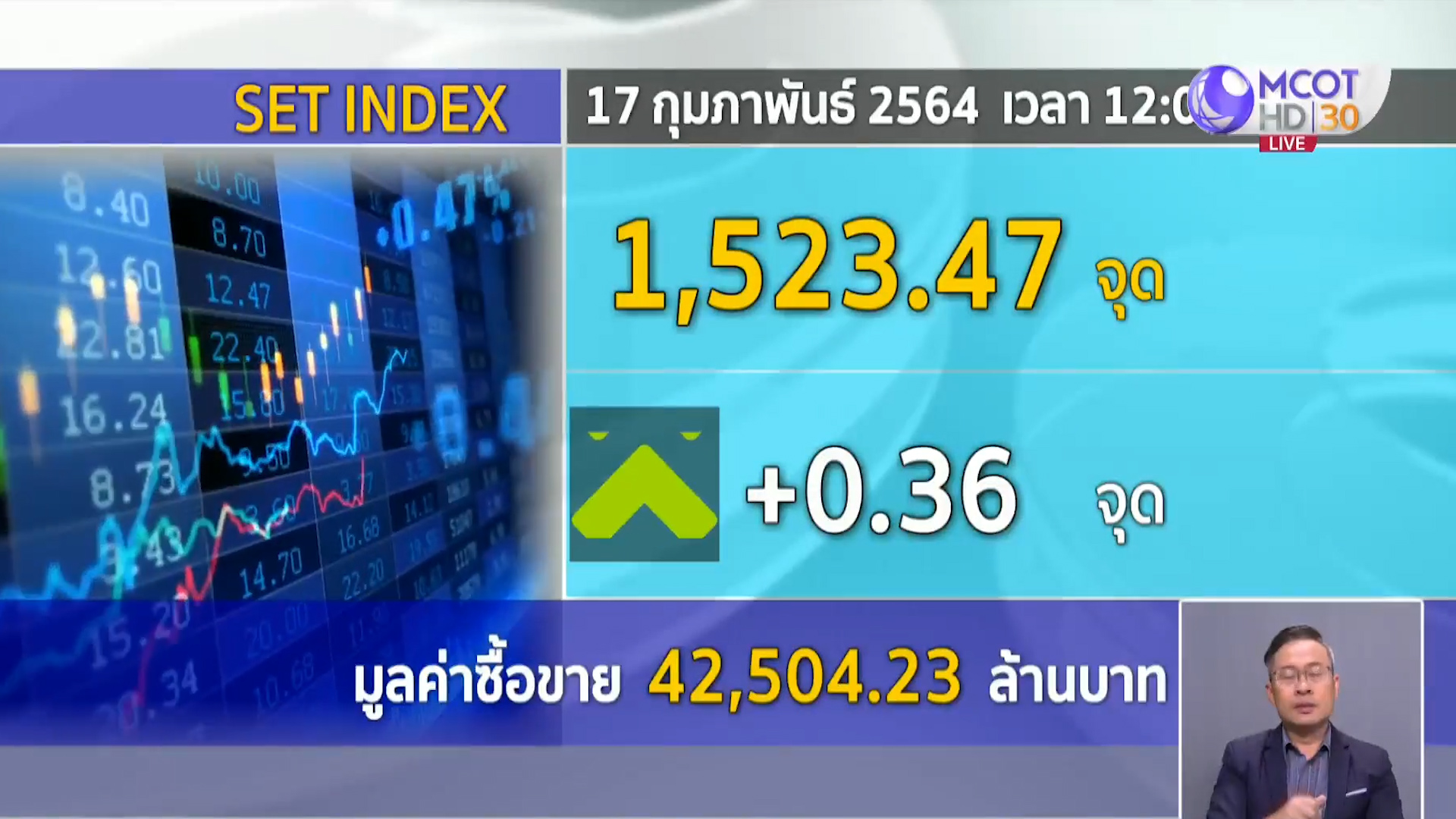 วันนี้ ดัชนีหุ้นไทยเคลื่อนไหวอยู่ที่ 1,523.47 จุด เพิ่มขึ้น 0.36 จุด มูลค่าการซื้อขาย 42,504.23 ล้านบาท ขณะที่หุ้น OR ร่วงลง แม้ว่าวันนี้ หุ้น OR จะได้รับการรวมในการคำนวณดัชนี SET50 และ SET100 และจะได้รับการรวมในการคำนวณดัชนี MSCI ในวันที่ 26 ก.พ. แต่ไม่สามารถนำเข้าคำนวณดัชนี FTSE แบบ Fast Entry ได้ เนื่องจากมูลค่าตามราคาตลาดของ OR ไม่ผ่านเกณฑ์ แต่ FTSE จะพิจารณาคุณสมบัติของ ORในการทบทวนรายไตรมาสครั้งต่อไป
