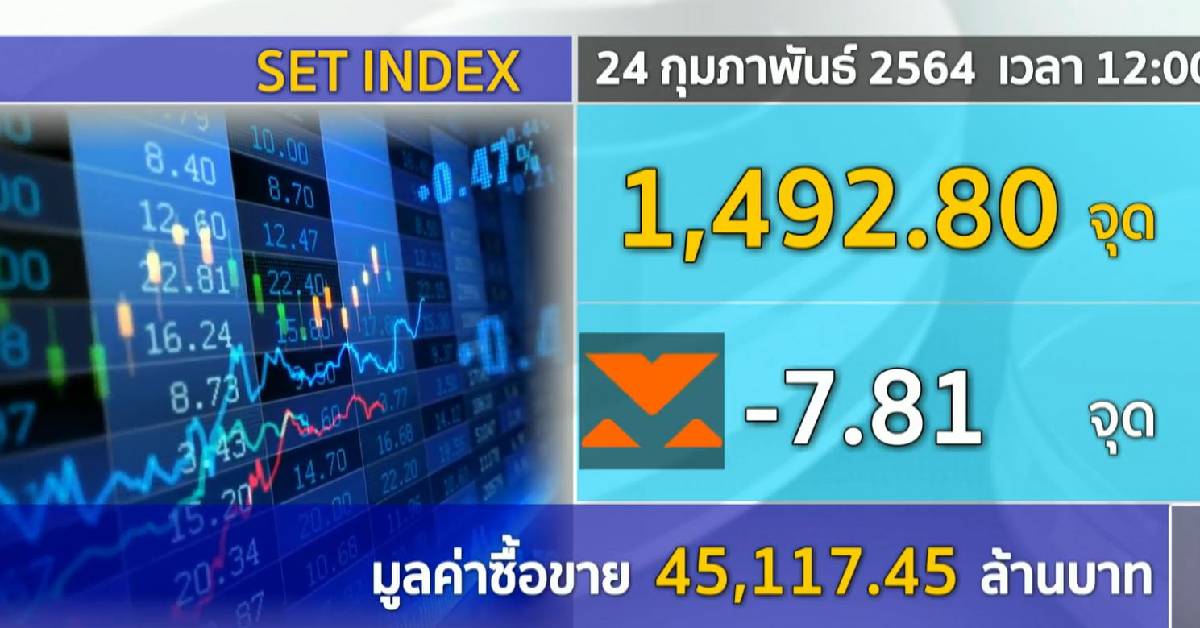 กทม. 24 ก.พ.-ตลาดหุ้นไทย แม้เปิดตลาดบวกรับวัคซีน แต่ล่าสุด ติดลบ 7.81 จุด ความผันผวนของตลาดหุ้นยังอยู่ในระดับสูง