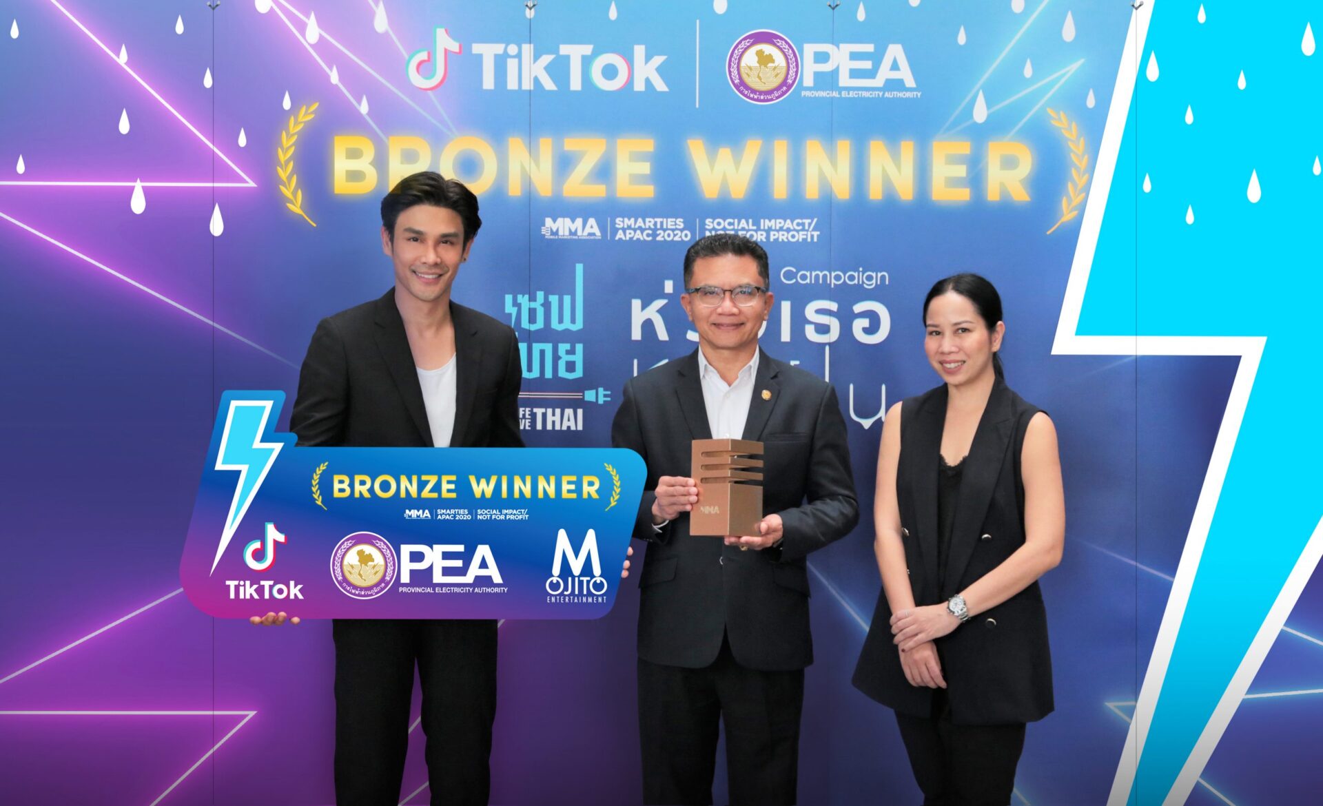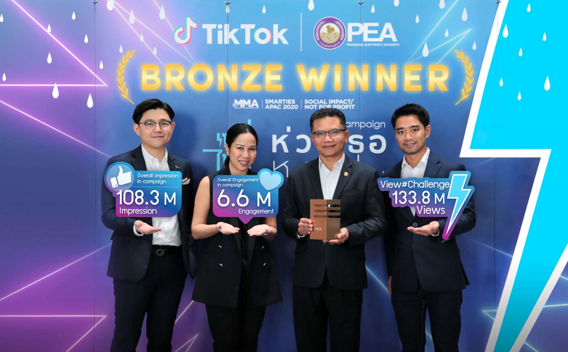 การไฟฟ้าส่วนภูมิภาค (PEA) คว้ารางวัลสุดสร้างสรรค์จากฝีมือคนไทย ในแคมเปญชื่อ “#ห่วงเธอหน้าฝน Challenge หรือ #SAFEINTHERAIN” บน TikTok แพลตฟอร์มการตลาดดิจิทัลแห่งปี 2020 ด้วยยอดวิว 133.8 ล้านวิว จากเวที “MMA SMARTIES 2020” ในกลุ่มประเภทผลงาน Social Impact : Not For Profit ในระดับภูมิภาคเอเชียตะวันออกเฉียงใต้