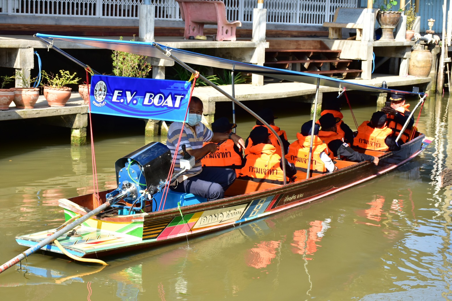 นอกจากนี้กรมเจ้าท่า ได้จัดทำร่างข้อบังคับกรมเจ้าท่าว่าด้วยการตรวจเรือ โดยสารที่ขับเคลื่อนด้วยพลังงานไฟฟ้า “ให้เหมาะสมกับ เรือหางยาว ที่จะขับเคลื่อนด้วยไฟฟ้า” ซึ่งขณะนี้อยู่ในขั้นตอนการส่งเข้ากระทรวงคมนาคม เพื่อพิจารณา โดยนำร่องการพัฒนาเรือหางยาวท่องเที่ยวให้เป็นเรือไฟฟ้าต้นแบบที่ใช้งานได้จริงและไม่เกิดเสียง หรือมลพิษทางอากาศ ลดPM 2.5 โดยโครงการดังกล่าวมีเรือจำนวน 3 ลำ เป็นเรือไม้ 2 ลำ และเรือจากภาคเอกชน ประกอบขึ้นด้วยอลูมิเนียม 1 ลำ ซึ่งชาร์จ 1 ครั้ง ใช้เวลา 4 ชั่วโมง วิ่งได้ ประมาณ 10 กิโลเมตร ความเร็วสูงสุด ประมาณ 20 กิโลเมตรต่อชั่วโมง และสามารถชาร์จไฟที่บ้านได้ ทั้งนี้ อธิบดีกรมเจ้าท่า ได้มอบนโยบาย โดยให้แนะนำผู้ประกอบการและชุมชน เปลี่ยนมาติดตั้งเครื่องยนต์ที่ใช้พลังงานไฟฟ้าในการขับเคลื่อน ให้เกิดขึ้น 8-10 ลำ เพื่อรองรับนักท่องเที่ยวทั้งในประเทศและต่างประเทศ คาดว่าภายหลังจากสถานการณ์โควิด-19 คลี่คลายลง จะมีนักท่องเที่ยวเข้ามาท่องเที่ยวในพื้นที่เป็นจำนวนมาก อีกทั้ง เป็นการท่องเที่ยวสีเขียววิถีใหม่ปลอดภัยไร้มลพิษอย่างยั่งยืน