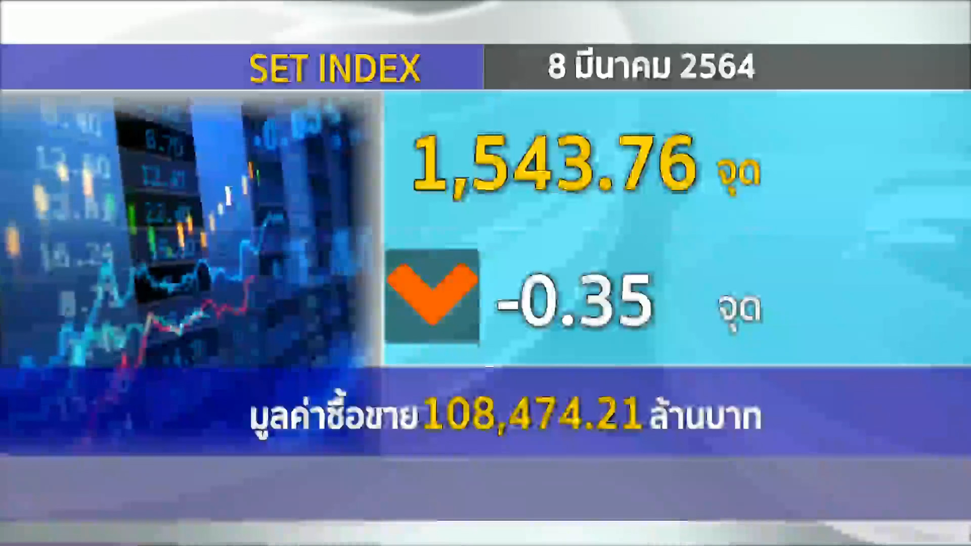 กรุงเทพฯ 8 มี.ค.-ตลาดหุ้นไทยปิดลบ 0.35 จุด ภาคบ่ายไหลลงหลัง Bond yield ปรับขึ้นต่อ-ขายหุ้น P/E สูง