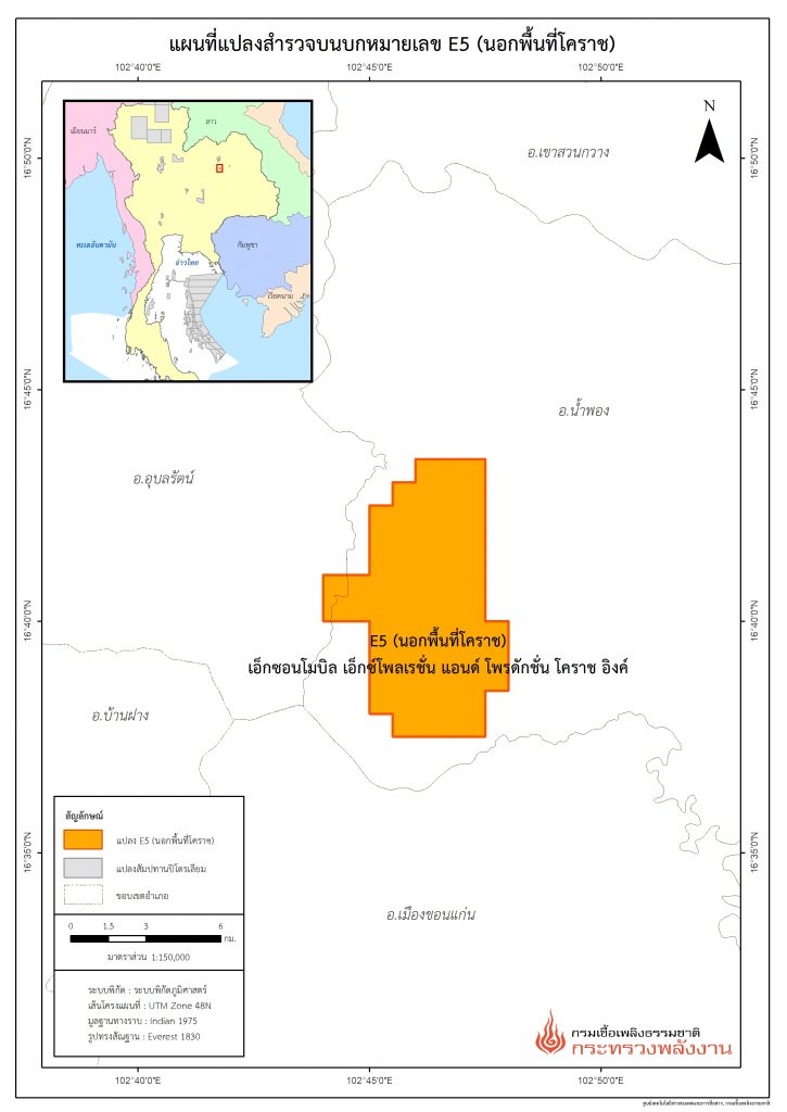 ผู้สื่อข่าวรายงานว่าวันนี้ (9 มี.ค.64) กระทรวงพลังงาน โดยกรมเชื้อเพลิงธรรมชาติ ได้ลงนามสัมปทานเพิ่มเติมของสัมปทานปิโตรเลียมเลขที่ 2/2522/17 แปลงสำรวจบนบกหมายเลข E5 (นอกพื้นที่โคราช) หรือแหล่งก๊าซธรรมชาติน้ำพอง จังหวัดขอนแก่น โดย บริษัท เอ็กซอนโมบิล เอ็กซ์โพลเรชั่น แอนด์ โพรดักชั่น โคราช อิงค์ เป็นผู้รับสัมปทาน ซึ่งถือเป็นแปลงสัมปทานปิโตรเลียมบนบกลำดับแรก ๆ ของประเทศไทยที่ผลิตและจำหน่ายก๊าซธรรมชาติมากว่า 30 ปี ซึ่งเป็นไปตามมติคณะรัฐมนตรีเมื่อวันที่ 2 มีนาคม 2564 โดยเป็นการต่อระยะเวลาการผลิตปิโตรเลียมออกไปอีก 10 ปี นับตั้งแต่วันที่ 16 มีนาคม 2564 ถึงวันที่ 15 มีนาคม 2574 แปลงสำรวจดังกล่าว มีพื้นที่ผลิตปิโตรเลียม จำนวน 34.40 ตารางกิโลเมตร ซึ่งครอบคลุมพื้นที่อำเภอน้ำพอง และอำเภออุบลรัตน์ จังหวัดขอนแก่น