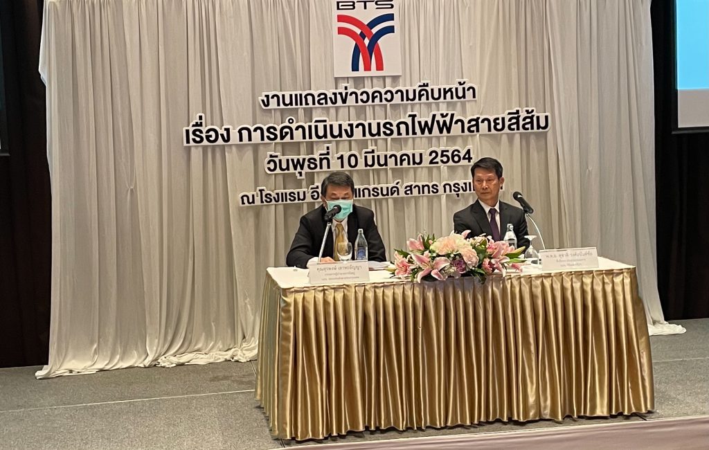 นายสุรพงษ์ เลาหอัญญา กรรมการผู้อำนวยการใหญ่ บริษัทระบบขนส่งมวลชนกรุงเทพจำกัด (มหาชน) หรือบีทีเอส. พร้อมด้วย พันตำรวจเอกสุชาติ วงศ์อนันต์ชัย ที่ปรึกษาประธานกรรมการ บริษัทบีทีเอสกรุ๊ปโฮลดิ้งจำกัด (มหาชน) เปิดแถลงข่าวเรื่องการดำเนินงานรถไฟฟ้าสายสีส้ม ช่วงบางขุนนนท์- มีนบุรี เพื่อให้ข้อมูลถึงปัญหา การประกวดราคารถไฟฟ้าสายสีส้มช่วงดังกล่าว หลังจากเมื่อวานที่ผ่านมา นายภคพงศ์ ศิริกันทรมาศ ผู้ว่าการ การรถไฟฟ้าขนส่งมวลชนแห่งประเทศไทย หรือ รฟม. ได้เปิดแถลงข่าวกับสื่อมวลชนเพื่อแจ้งให้ทราบว่าศาลปกครองกลางได้ทำหนังสือถึง รฟม. แจ้งให้ทราบว่าศาลได้มีการจำหน่ายคดี ข้อพิพาทแล้ว จึงไม่เป็นเหตุให้ รฟม. ต้องชะลอการเดินหน้าเปิดรับฟังความคิดเห็นภาคเอกชนรอบใหม่ ตามที่บีทีเอส. ได้ทำหนังสือขอให้นายกรัฐมนตรีดำเนินการตรวจสอบ ข้อพิรุธในการยกเลิกการประมูลรอบแรก