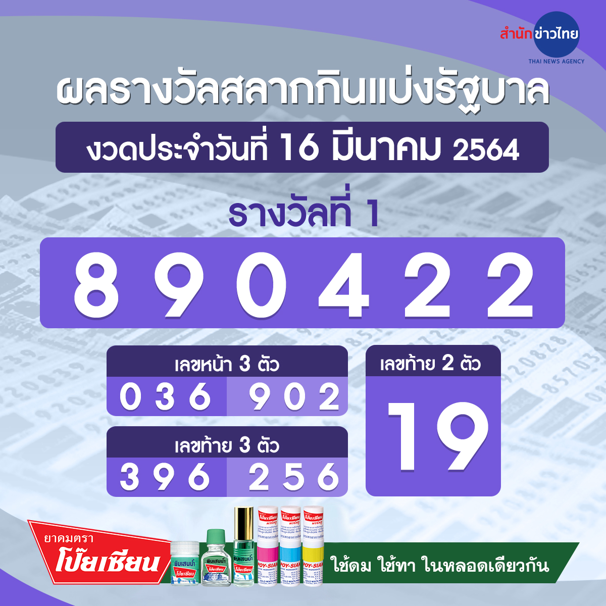 รางวัลเลขท้าย 2 ตัว ได้แก่ 19