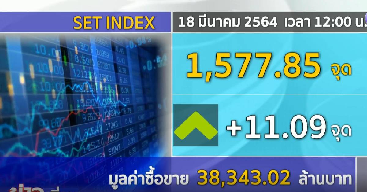 กทม. 18 มี.ค.-ตลาดหุ้นไทยวันนี้ เปิดตัวช่วงเช้าดีดตัวขึ้นรับข่าวดีเฟด แต่ยังมีกรอบจำกัด เพราะว่าการดีดตัวของดัชนีในภูมิภาคก็ไม่แรงมาก แล้วก็มีแรงขายของนักลงทุนต่างชาติในหุ้นไทยด้วย ดัชนีช่วงเที่ยงอยู่ที่ 1,577.85 จุด +11.09 จุด มูลค่าการซื้อขาย 38,343.02 ล้านบาท