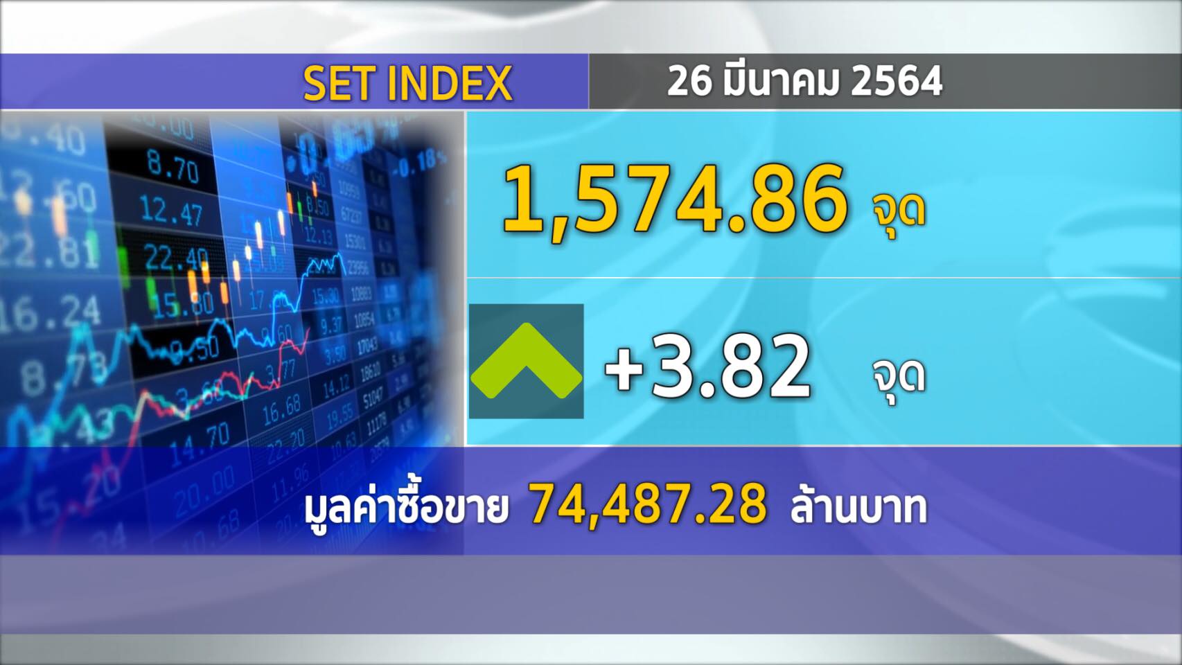 กรุงเทพฯ 26 มี.ค.-ตลาดหลักทรัพย์ปิดวันนี้ที่ระดับ 1,574.86 จุด เพิ่มขึ้น 3.82 จุด (+0.24%) มูลค่าการซื้อขาย 74,487.28 ล้านบาท ปรับขึ้นจำกัดแม้รับข่าวดีเปิดรับนักท่องเที่ยวต่างชาติแต่ Valuation สูง