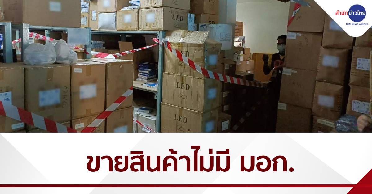 กรุงเทพฯ 30 มี.ค. – สมอ. บุกทลายร้านค้าออนไลน์ ย่านศรีนครินทร์ แหล่งพักสินค้าก่อนส่ง พบโคมไฟ หลอดไฟ อุปกรณ์แปลงไฟ และสายไฟฟ้า ไม่มี มอก. กว่า 60,000 ชิ้น มูลค่ากว่า 20 ล้านบาท