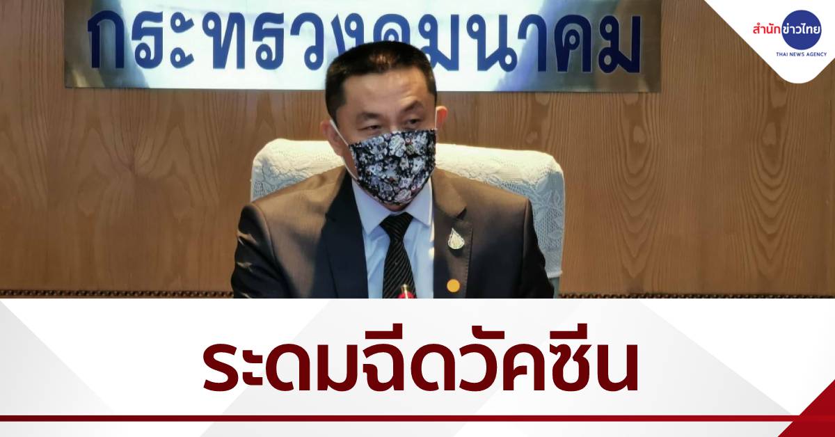 กรุงเทพฯ 30 มี.ค.-“ศักดิ์สยาม” สั่งเร่งระดมฉีดวัคซีน ผู้ปฏิบัติงานของหน่วยงานสังกัดคมนาคม ในจังหวัดเป้าหมาย รับการเปิดประเทศ 1 ก.ค.64 พนักงานท่าอากาศยานภูเก็ต เฮ นำร่อง 8,000 โดส