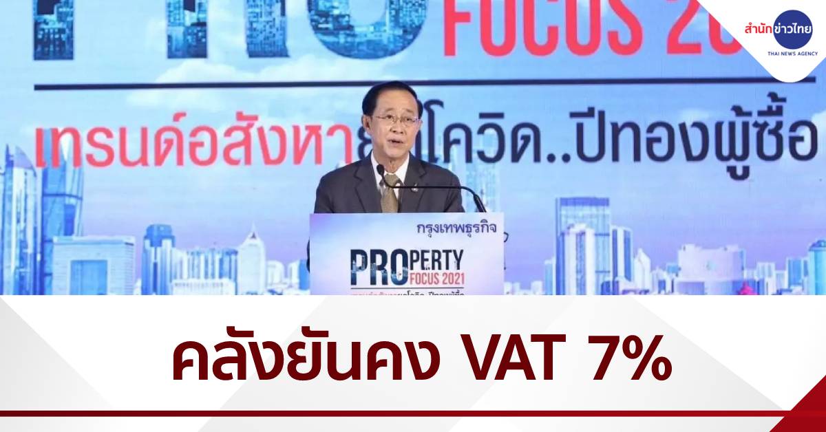 กรุงเทพฯ 31 มี.ค.-รมว.คลัง ยันขยายเวลาเก็บภาษีมูลค่าเพิ่มที่ร้อยละ 7 ออกไป หลังไทยได้รับผลกระทบโควิด ปลอบใจ นักลงทุนภาคอสังหาริมทรัพย์ ผลักดันจีดีพีเติบโตแบบค่อยเป็นค่อยไป ปี 2564 ขยายตัวร้อยละ 4