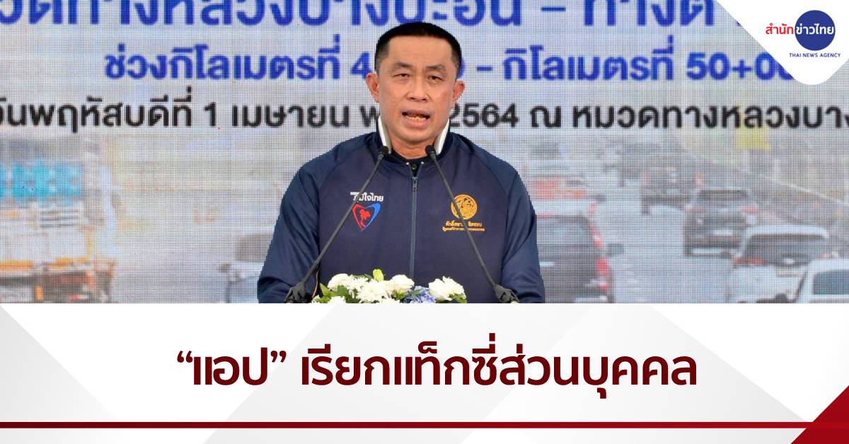 “มั่นใจว่า การเรียกใช้บริการรถยนต์ส่วนบุคคล ผ่านแอพพลิเคชั่นนั้นจะสามารถใช้ได้จริงได้แน่นอน ภายในปี 2564 นี้ เพื่อเป็นทางเลือกงให้ประชาชนผู้ใช้บริการรถโดยสารสาธารณะ สามารถเลือกใช้บริการได้อย่างเสรี นอกจากรถแท็กซี่ทั่วไปแล้วก็จะสามารถเรียกใช้บริการรถยนต์ส่วนบุคคลผ่านแอพพลิเคชั่นเข้ามาเสริมให้บริการด้วย”นายศักดิ์สยามกล่าว.-สำนักข่าวไทย