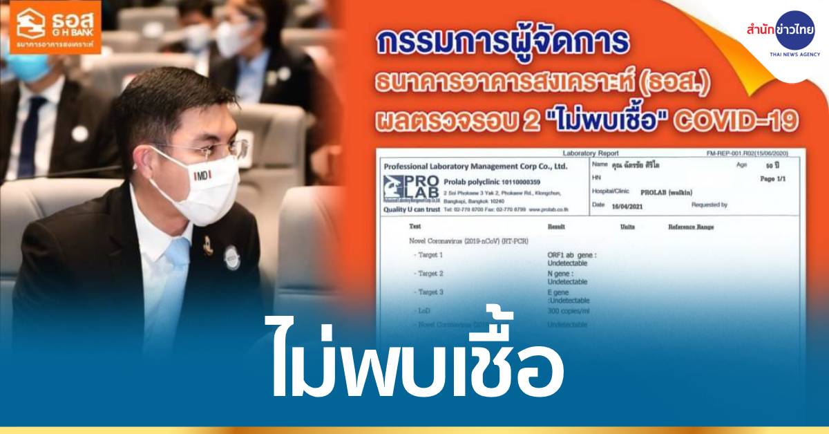 กรุงเทพฯ 18 เม.ย.-ธนาคารอาคารสงเคราะห์ แจ้งผลตรวจหาเชื้อโควิด-19 รอบ 2 กรรมการผู้จัดการ ผู้บริหาร และสื่อมวลชน ไม่พบเชื้อ หลังเข้าชมการแสดงดนตรีของ “แสตมป์” ที่เกาะช้าง