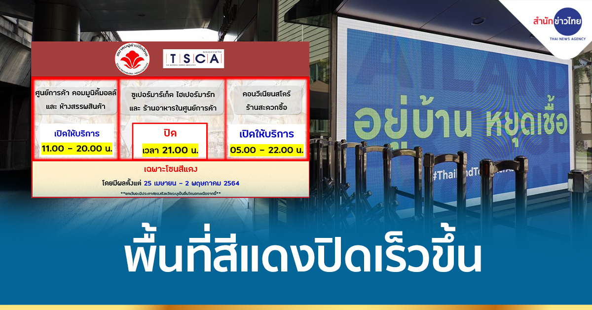 กรุงเทพฯ 24 เม.ย.-ห้างสรรพสินค้า-ร้านสะดวกซื้อ พื้นที่สีแดง 18 จังหวัด ปรับเวลาเปิดปิด ตั้งแต่ 25 เมษายน – 2 พฤษภาคม 2564