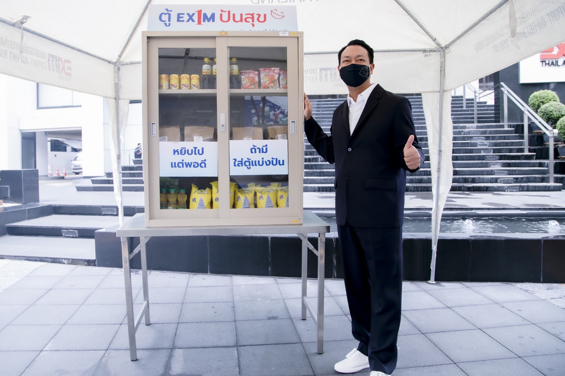 กรุงเทพฯ 29 เม.ย.-นายรักษ์ วรกิจโภคาทร กรรมการผู้จัดการ EXIM BANK เปิดโครงการ “ตู้ EXIM 1 ปันสุข” ภายใต้โครงการด้านความรับผิดชอบต่อสังคม (CSR) “EXIM เพื่อสุขภาพชุมชน” โดยจัดให้มีตู้อาหารแห้งที่ได้รับการสนับสนุนจากธนาคารและเพื่อนพนักงาน ตลอดจนประชาชนในพื้นที่ เพื่อเยียวยาความเดือดร้อนของประชาชนผู้มีรายได้น้อยในชุมชนพญาไท ณ ด้านหน้าและด้านหลัง EXIM BANK สำนักงานใหญ่ เมื่อวันที่ 29 เมษายน 2564.-สำนักข่าวไทย