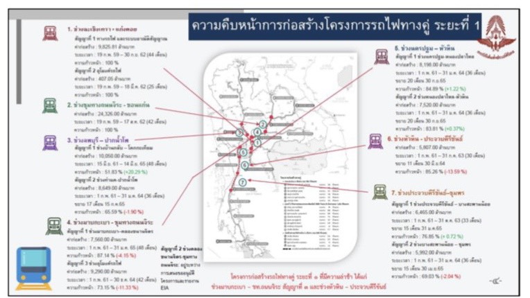 สำหรับความคืบหน้างานก่อสร้าง รถไฟทางคู่ ระยะที่ 1 ประกอบด้วย