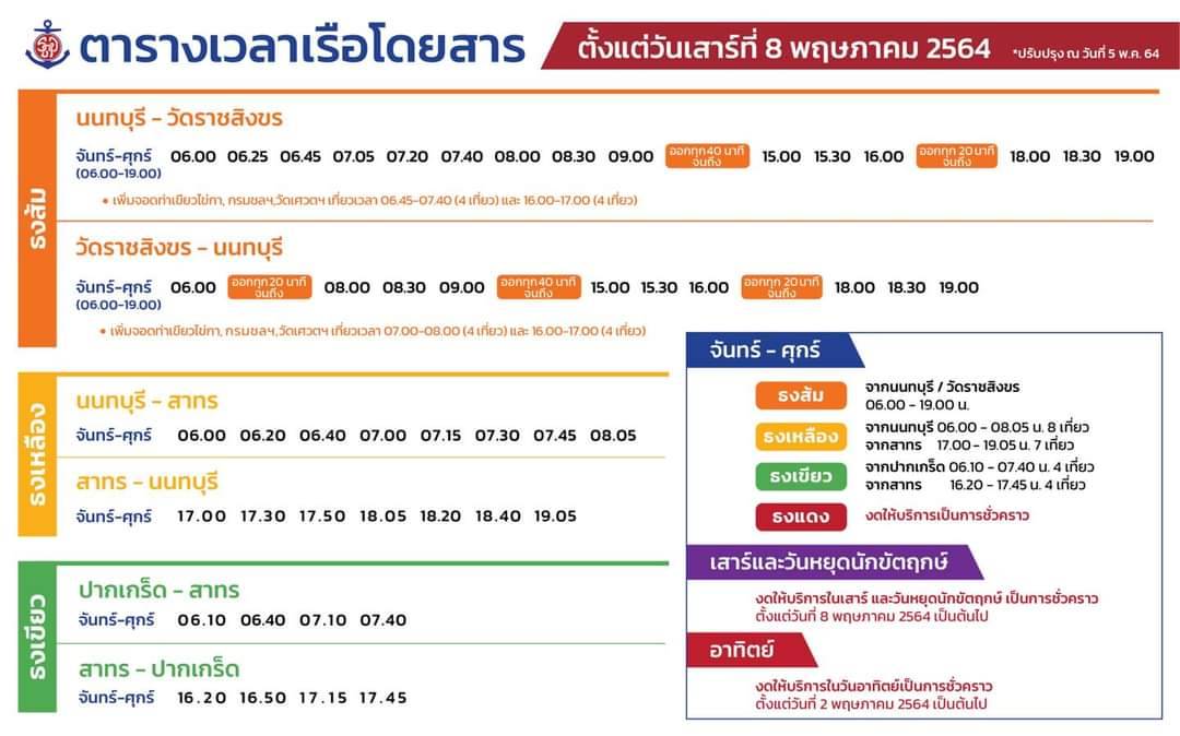 นาวาตรีเจริญพร กล่าวต่อว่า บริษัทฯ ต้องขออภัยผู้โดยสารที่ได้รับผลกระทบจากการงดเดินเรือในช่วงเวลาดังกล่าว บริษัทฯ เข้าใจและเห็นใจผู้โดยสารทุกท่านที่ใช้บริการเรือด่วนเจ้าพระยามาโดยตลอด อย่างไรก็ตาม ในช่วงวันทำการ จันทร์ – ศุกร์ บริษัทฯ ยังให้บริการเดินเรือตามปกติทุกธง ยกเว้นเรือธงแดง และพิเศษเฉพาะในวันที่ 10 พฤษภาคม 2564 เรือด่วนเจ้าพระยาจะให้บริการเฉพาะธงสีส้ม ตั้งแต่เวลา 07.00-19.00 น. โดยมีความถี่ในการเดินเรือ ประมาณ 30 นาที ผู้โดยสารโปรดเผื่อเวลาในการใช้บริการ