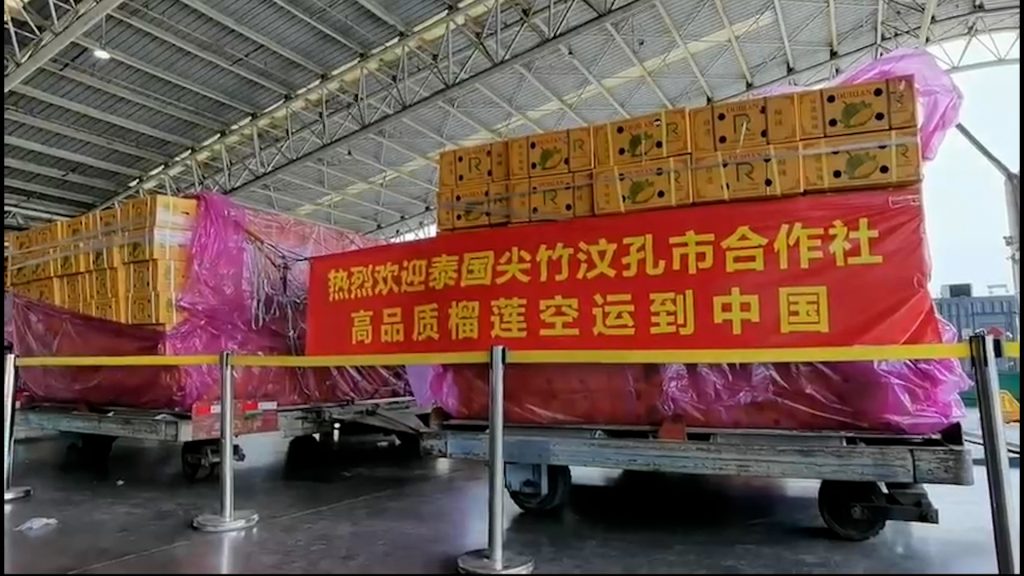 นายอลงกรณ์ พลบุตร ที่ปรึกษารัฐมนตรีว่าการกระทรวงเกษตรและสหกรณ์กล่าวว่า ได้จัดเครื่องบินเช่าเหมาลำส่งทุเรียนไปยังเมืองซีอาน มณฑลส่านซีในภาคตะวันตกเฉียงเหนือของจีนแล้ว โดยเป็นความร่วมมือระหว่างกระทรวงเกษตร กระทรวงพาณิชย์ บริษัทเอกชน และสหกรณ์เมืองขลุง จังหวัดจันทบุรีทำรูปแบบการจำหน่ายโดยให้สั่งจองล่วงหน้า ผ่านการไลฟ์ทางออนไลน์เป็นครั้งที่ 2 ซึ่งจำหน่ายได้ถึง 25 ตัน จำนวน 11,200 ลูกภายใน 45นาที มากกว่าครั้งแรกซึ่งจำหน่ายได้ 20 ตันใน 9 ชั่วโมง
