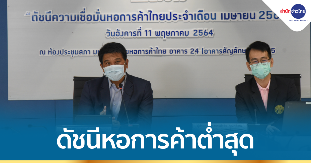 ทั้งนี้ ดัชนีความเชื่อมั่นหอการค้าไทยในเดือนเมษายน อยู่ที่ 27.1 ถือว่าเป็นจุดที่ต่ำที่สุดตั้งแต่การทำผลสำรวจนี้ และการสำรวจจากหอการค้าจังหวัดต่างๆในเรื่องของเศรษฐกิจของจังหวัดโดยรวม พบว่า มีประมาณร้อยละ 78.3 ที่ตอบว่าสถานการณ์ในรอบนี้แย่ลง ซึ่งทางหอการค้าก็คาดการณ์ว่าในอีก 6 เดือนข้างหน้าสถานการณ์จะปรับตัวดีขึ้น ในเรื่องของการที่เศรษฐกิจโลกฟื้นตัว การฉีดวัคซีนในต่างประเทศ และการฉีดวัคซีนในไทย