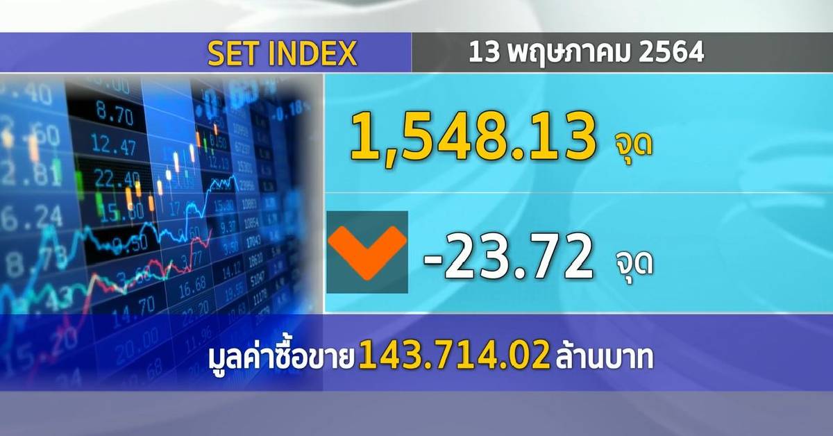 กทม. 13 พ.ค.-ตลาดหลักทรัพย์ปิดวันนี้ที่ระดับ 1,548.13 จุด ลดลง 23.72 จุด (-1.51%) มูลค่าการซื้อขาย 143,714.02 ล้านบาท ถล่มขายหุ้นกลางเล็ก-Block Trade ซ้ำ