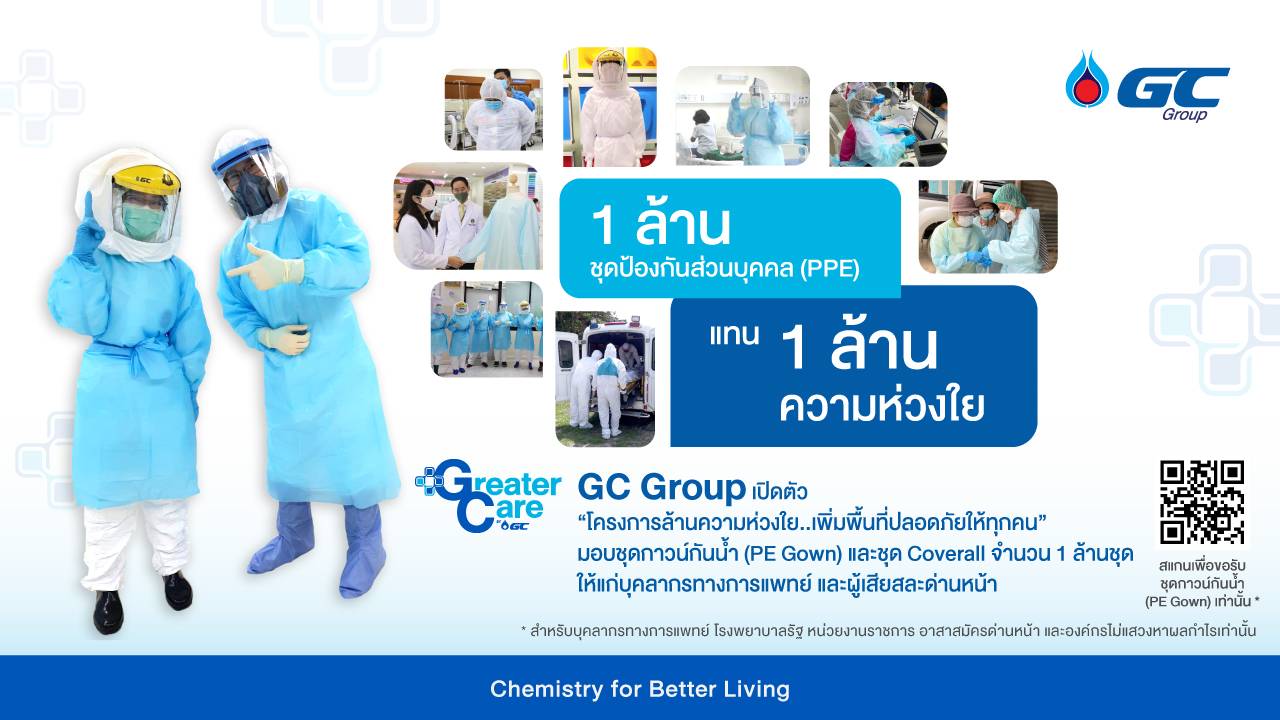 นายคงกระพัน อินทรแจ้ง ประธานเจ้าหน้าที่บริหาร (CEO) บริษัท พีทีที โกลบอล เคมิคอล จำกัด (มหาชน) หรือ GC กล่าวว่า จากสถานการณ์การแพร่ระบาดของโรคโควิด 19 ในประเทศไทยยังคงอยู่ในภาวะวิกฤต GC ขอส่งกำลังใจและพร้อมเป็นส่วนหนึ่งในการสนับสนุนสังคม ตั้งแต่บุคลากรทางการแพทย์ โรงพยาบาลรัฐ หน่วยงานราชการ อาสาสมัครด่านหน้ารวมถึงองค์กรไม่แสวงหาผลกำไร จึงได้ริเริ่มโครงการ “ล้านความห่วงใย เพิ่มพื้นที่ปลอดภัยให้ทุกคน” เพื่อรับมือกับวิกฤตโควิด 19 ในระลอก 3 นี้ ได้ผสานความร่วมมือกับพันธมิตร ดำเนินการส่งมอบชุดป้องกันส่วนบุคคล (PPE) รวมถึงผลิตภัณฑ์อุปกรณ์ทางการแพทย์ต่างๆ ภายใต้แบรนด์ Greater Care by GC สำหรับป้องกันโรคโควิด 19 ไปยังโรงพยาบาลและหน่วยงานรัฐทั่วประเทศแล้ว ตั้งแต่เกิดวิกฤตครั้งแรกจนถึงวันนี้ เป้าหมายของโครงการ คือ การสนับสนุนชุดป้องกันส่วนบุคคล (PPE) ให้ครบจำนวน 1,000,000 ชุด เพื่อให้เพียงพอต่อความต้องการ