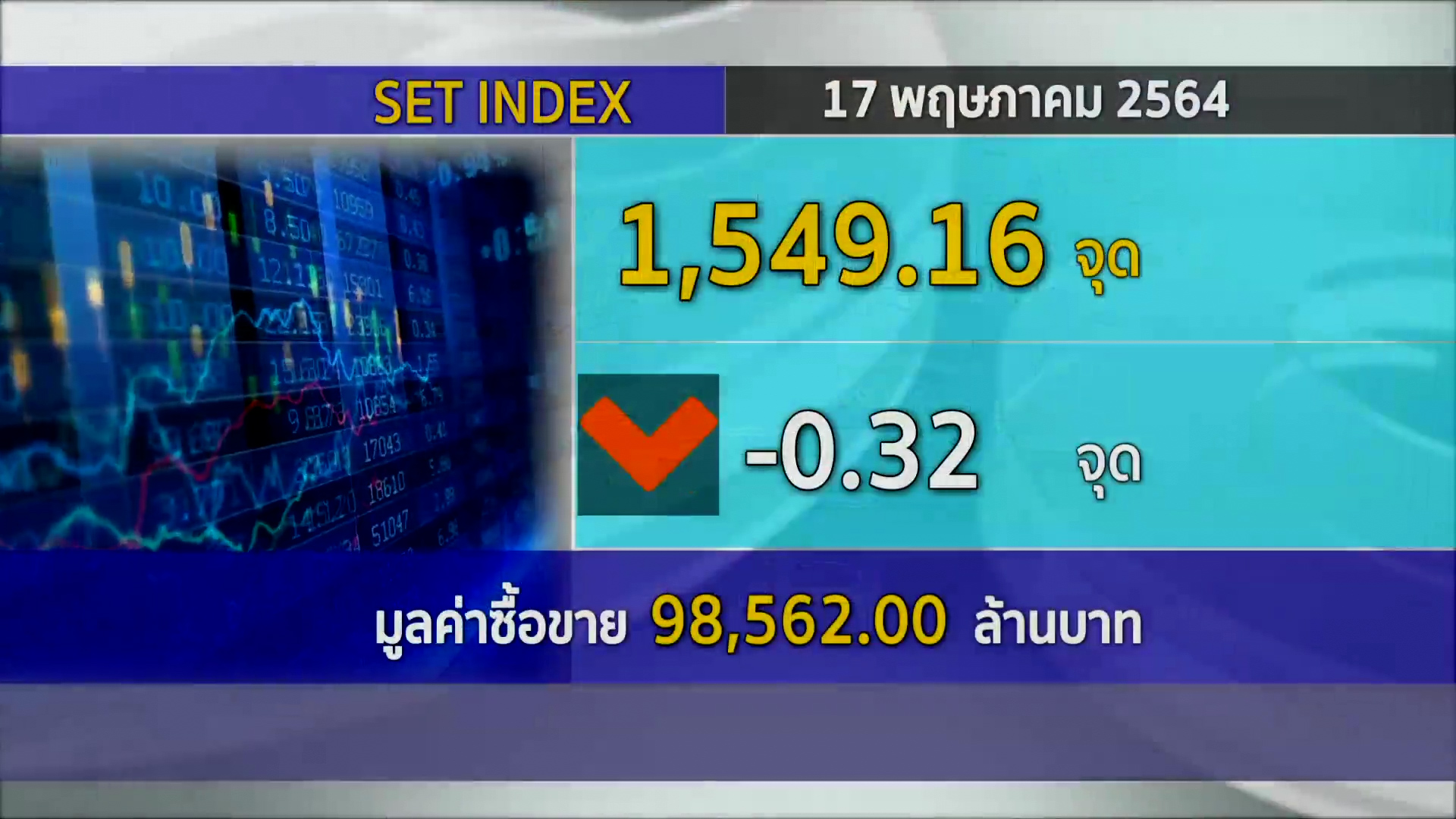 กรุงเทพฯ 17 พ.ค.-ตลาดหลักทรัพย์ปิดวันนี้ที่ระดับ 1,549.16 จุด ลดลง 0.32 จุด (-0.02%) มูลค่าการซื้อขาย 98,562.00 ล้านบาท รับแรงกดดันโควิดในประเทศระบาดหนัก-MSCI ปรับลดน้ำหนักหุ้นไทย