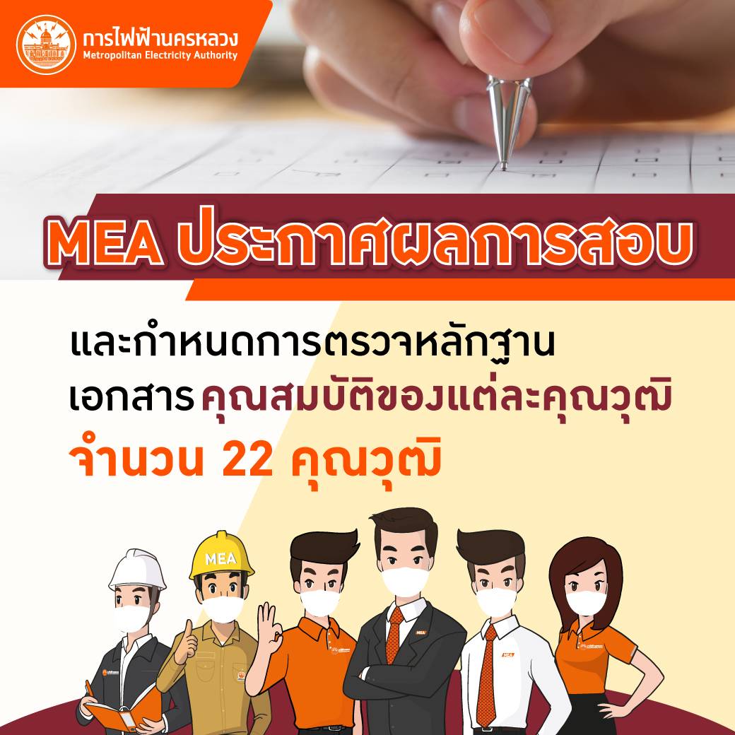 MEA ประกาศผลการสอบ และกำหนดการตรวจหลักฐานเอกสารคุณสมบัติพนักงานใหม่