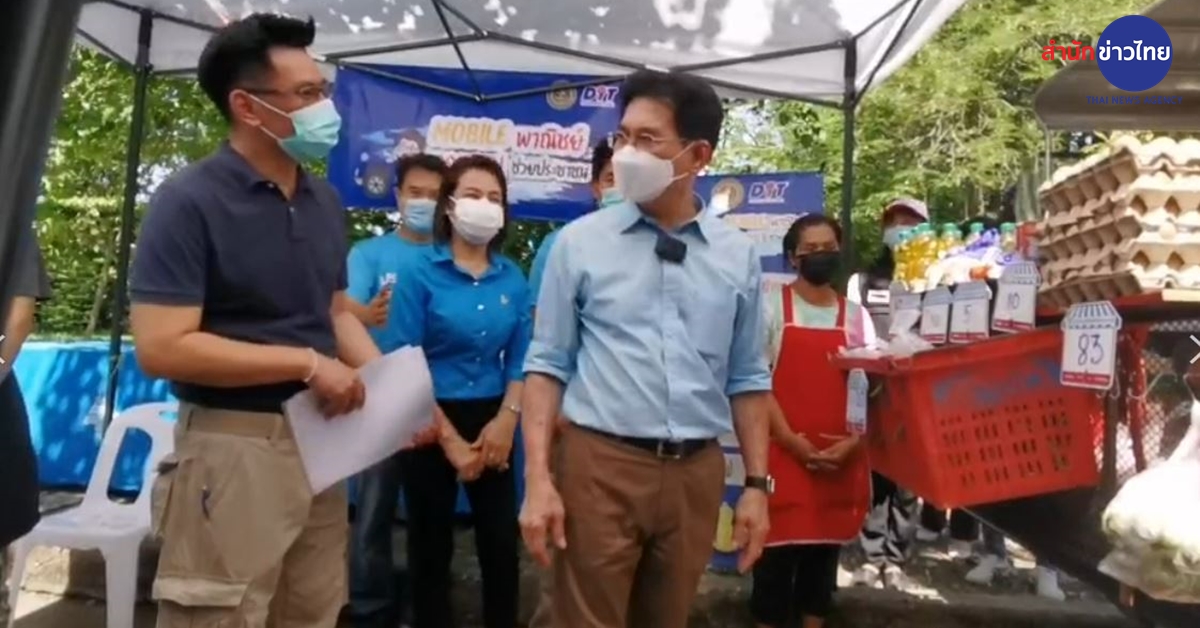 วันที่ 23 พฤษภาคม 2564 เวลา 10.30 น. นายจุรินทร์ ลักษณวิศิษฏ์ หัวหน้าพรรคประชาธิปัตย์ รองนายกรัฐมนตรีและรัฐมนตรีว่าการกระทรวงพาณิชย์ ร่วมกับ ดร.สรรเสริญ สมะลาภา ผู้ช่วยรัฐมนตรีประจำกระทรวงพาณิชย์ และนายวัฒนศักย์ เสือเอี่ยม อธิบดีกรมการค้าภายใน ลงพื้นที่ช่วยประชาชนและติดตามโครงการ “โมบายพาณิชย์ ลดราคา! ช่วยประชาชน” ที่หมู่บ้านเสนานิเวศน์ โครงการ 2 เขตลาดพร้าว กรุงเทพมหานคร