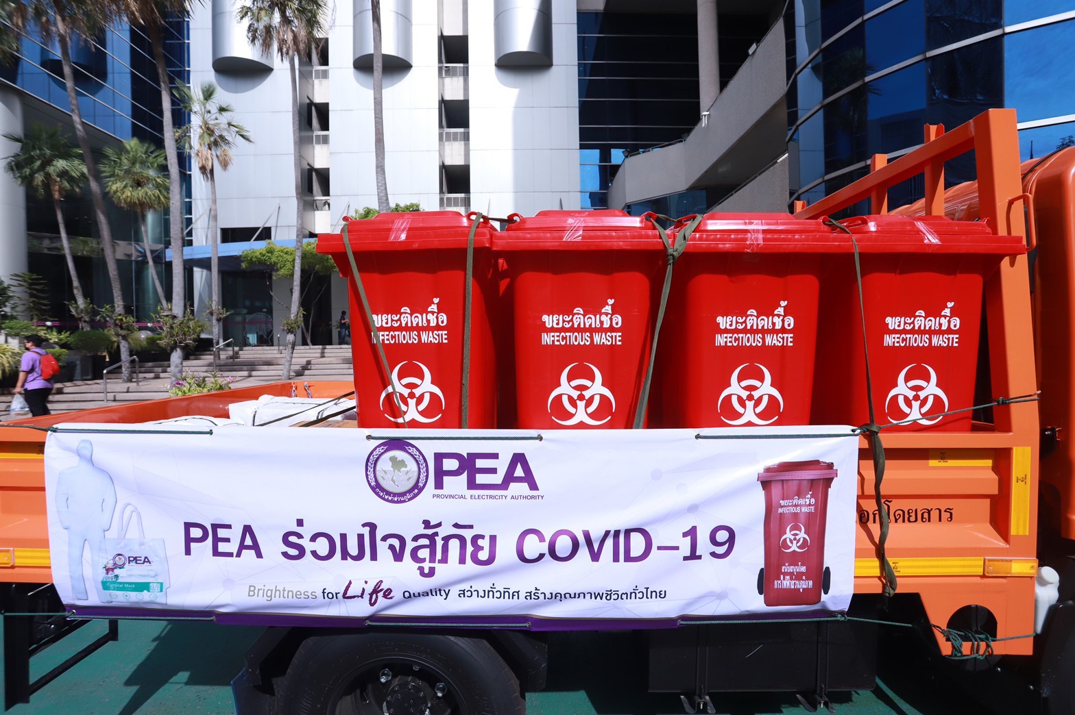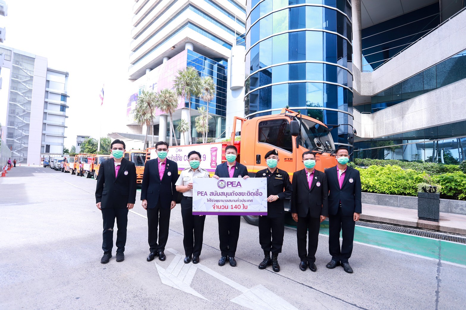 วันที่ 25 พฤษภาคม 2564 เวลา 09.30 น. นายยอดพจน์ วงศ์รักมิตร ประธานกรรมการธรรมาภิบาลและการพัฒนาอย่างยั่งยืน ศาสตราจารย์ วีรกร อ่องสกุล กรรมการธรรมาภิบาลและการพัฒนาอย่างยั่งยืน และนายสมพงษ์ ปรีเปรม ผู้ว่าการการไฟฟ้าส่วนภูมิภาค ร่วมมอบสิ่งของเครื่องใช้อุปกรณ์ทางการแพทย์ ให้กับผู้ป่วย COVID-19 ในเรือนจำพิเศษ กรุงเทพมหานคร และ ทัณฑสถานหญิงกลาง โดยมี นายนัสที ทองปลาด ผู้บัญชาการเรือนจำพิเศษกรุงเทพมหานคร นางสาวโศรยา ฤทธิอร่าม ผู้อำนวยการทัณฑสถานหญิงกลางเป็นผู้รับมอบ พร้อมปล่อยขบวนรถส่งมอบถังขยะติดเชื้อ สิ่งของเครื่องใช้ทางการแพทย์ ให้โรงพยาบาลและผู้ป่วย COVID-19 ในโครงการ PEA ร่วมใจสู้ภัย COVID-19 ไปยังโรงพยาบาลสนามทั่วประเทศ ณ บริเวณด้านหน้าอาคาร LED การไฟฟ้าส่วนภูมิภาค สำนักงานใหญ่