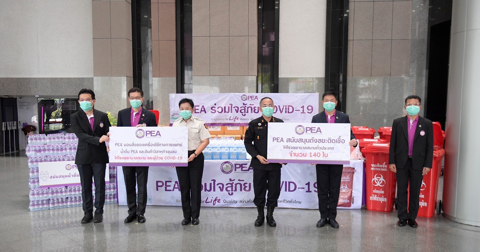 กรุงเทพฯ 25 พ.ค.- PEA ร่วมใจสู้ภัย COVID–19 มอบเครื่องใช้อุปกรณ์ทางการแพทย์ ให้กับผู้ป่วย COVID-19 ในเรือนจำพิเศษ กรุงเทพมหานคร และ ทัณฑสถานหญิงกลาง รวมถึงส่งมอบถังขยะติดเชื้อ อุปกรณ์ทางการแพทย์ให้แก่โรงพยาบาลสนามทั่วประเทศ