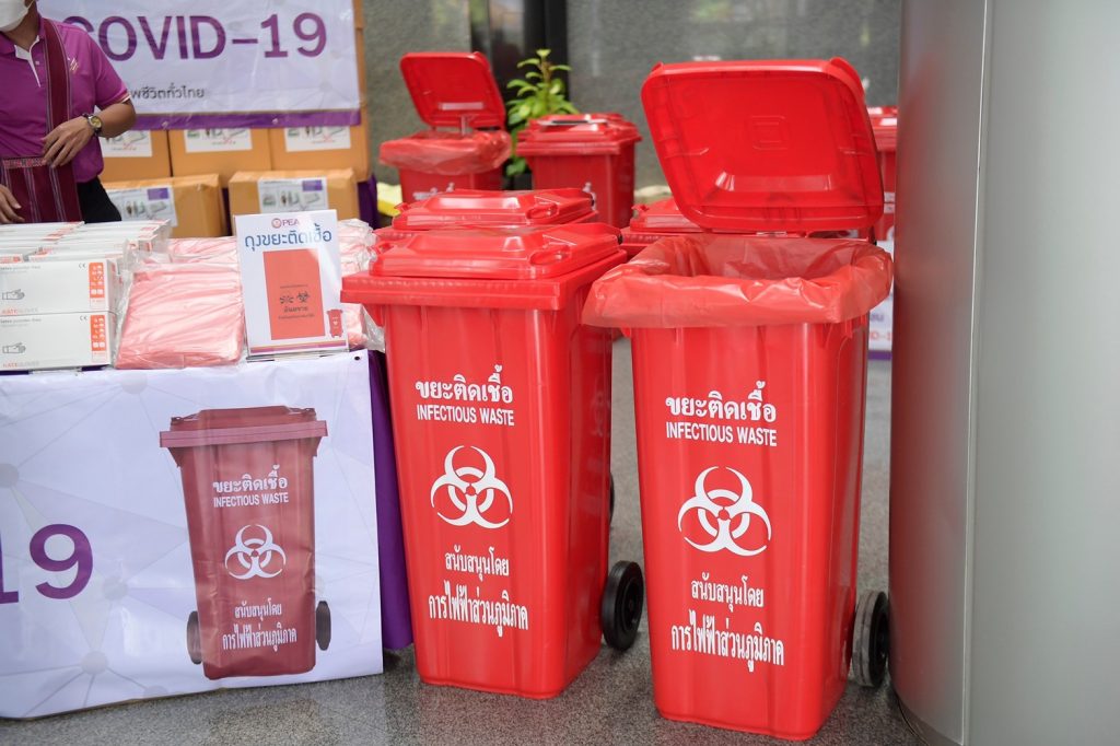 3. มอบถังขยะติดเชื้อให้กับโรงพยาบาลสนามที่ยังขาดแคลน จำนวน 140 ใบ