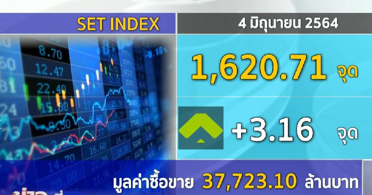 กทม. 4 มิ.ย.-ตลาดหุ้นไทยเช้าวันนี้ ดัชนีแกว่งตัวกรอบแคบๆ แม้ตลาดจะได้แรงหนุนคาดการณ์เศรษฐกิจไทยฟื้นตัวหลังการฉีดวัคซีน รวมถึงราคาน้ำมันดิบที่ทรงตัวระดับสูง แต่เงินเฟ้อที่เร่งตัวขึ้นกดดดันดัชนีอยู่บ้าง ดัชนีช่วงเที่ยงอยู่ที่ 1,620.71 จุด เพิ่มขึ้น 3.16 จุด มูลค่าซื้อขาย 37,723.10 ล้านบาท