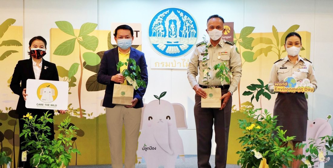 นายพูนสิทธิ์ ว่องธวัชชัยผู้ช่วยกรรมการผู้จัดการใหญ่ ผู้บริหารสายงานการพัฒนาด้านสิ่งแวดล้อม สังคม และธรรมาภิบาลสู่ความยั่งยืน ธนาคารกรุงศรีอยุธยา จำกัด (มหาชน) ส่งมอบกล้าไม้พันธุ์ดี พร้อมปุ๋ยอินทรีย์คุณภาพที่ผลิตจากขยะเศษอาหาร แก่ตลาดหลักทรัพย์แห่งประเทศไทยและกรมป่าไม้จากการผนึกพลังความร่วมมือภาครัฐและเอกชนเพื่อเพิ่มและฟื้นฟูพื้นที่ป่าชุมชนบ้านพุตูม จ. เพชรบุรี จำนวน 10 ไร่ ภายใต้โครงการ “Care the Wild” ปลูกป้อง Plan & Protect ฉลองวันสิ่งแวดล้อมโลก 5 มิถุนายน 2564 โดยมีนายจิระศักดิ์ ชูความดีรองอธิบดีกรมป่าไม้และนางสาวนพเก้า สุจริตกุล ผู้ช่วยผู้จัดการ หัวหน้ากลุ่มงานสื่อสารองค์กรและพัฒนาเพื่อสังคม ตลาดหลักทรัพย์แห่งประเทศไทย เป็นผู้รับมอบ ณ กรมป่าไม้-สำนักข่าวไทย